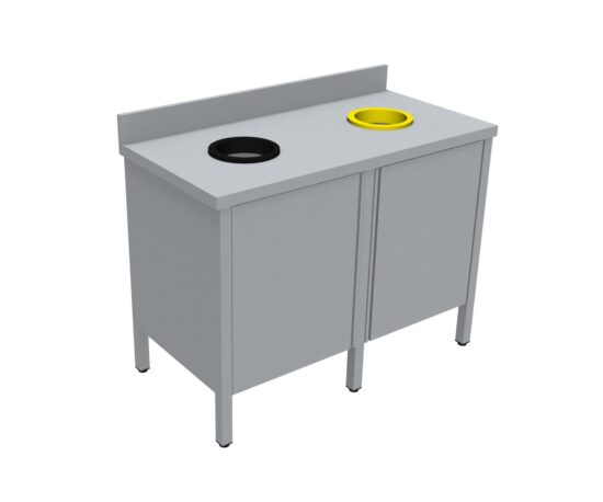 MEUBLE DE TRI INOX 304, 2 PORTES, SANS RAMPE A PLATEAUX, AVEC DOSSERET, 2 TVO: 1 N + 1 J