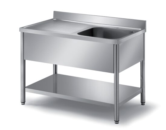 PLONGE DEMONTABLE INOX 304, 1 BAC 600X500X300MM PIEDS RONDS, EGOUTTOIR A DROITE