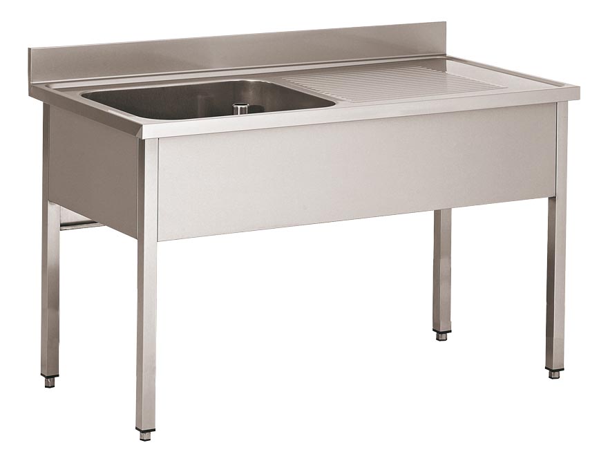 PLONGE INOX 304 DEMONTABLE, 1 BAC 500X400X250 MM PIEDS CARRES, EGOUTTOIR A DROITE