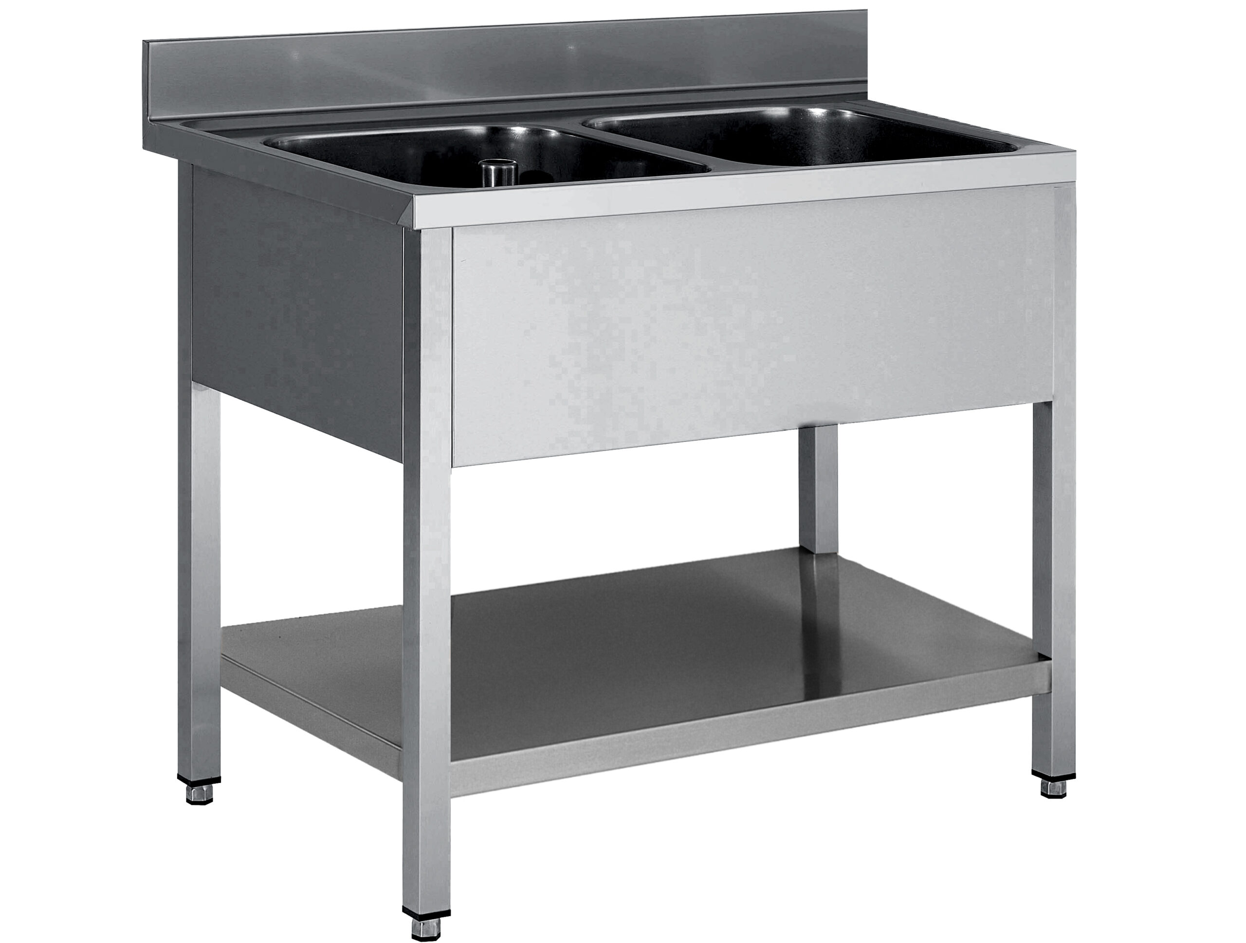 PLONGE INOX 304 DEMONTABLE, 2 BACS 500X500X300 MM PIEDS CARRES, SANS EGOUTTOIR , ETAGERE BASSE