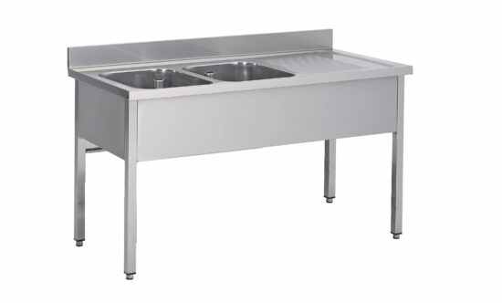 PLONGE INOX SOUDEE, 2 BACS 400X400X250 MM EGOUTTOIR A DROITE