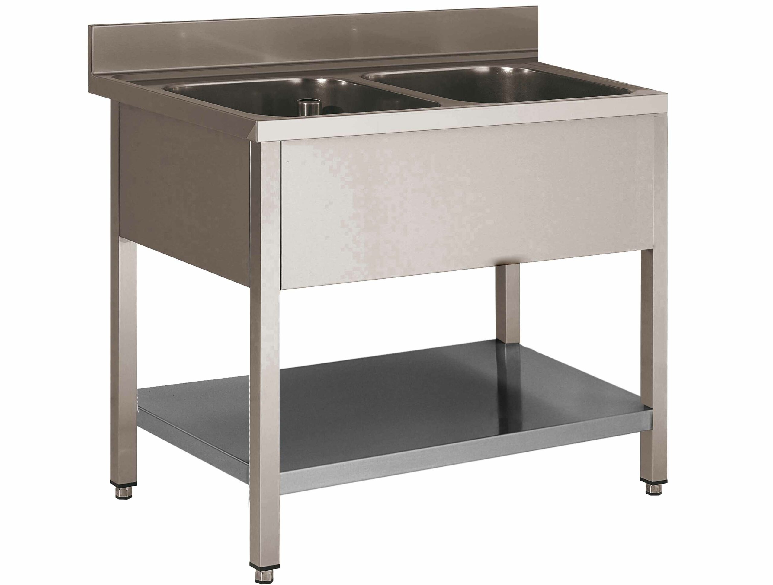 PLONGE INOX SOUDEE, 2 BACS 400X400X250 MM SANS EGOUTTOIR, AVEC ETAGERE BASSE