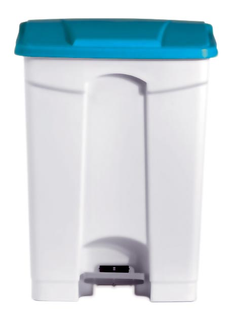 POUBELLE BLANCHE POLYPROPYLENE 90L COUVERCLE BLEU ROULANTE, COUVERCLE BLEU