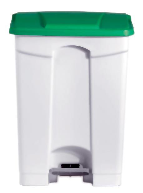 POUBELLE BLANCHE POLYPROPYLENE 90L COUVERCLE VERT ROULANTE, COUVERCLE VERT