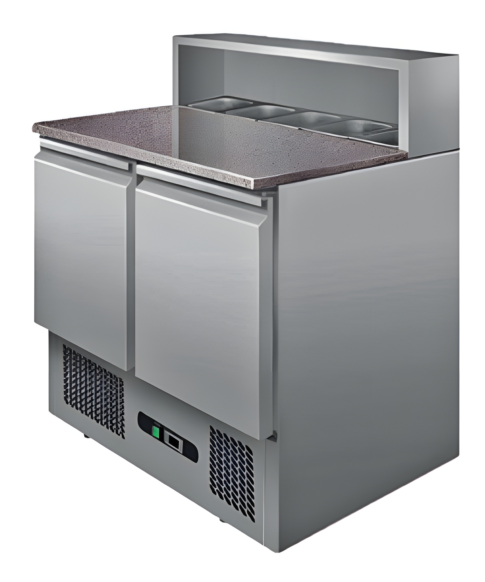 TABLE A PIZZA DESSUS GRANIT, +2/+8°C, GAZ R600A 2 PORTES GN1/1, CAP.5GN1/6 NON COMPRIS
