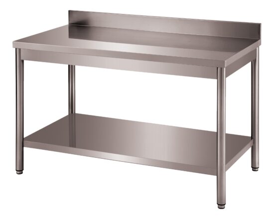 TABLE ADOSSEE DEMONTABLE INOX 304, PIEDS RONDS AVEC ETAGERE BASSE