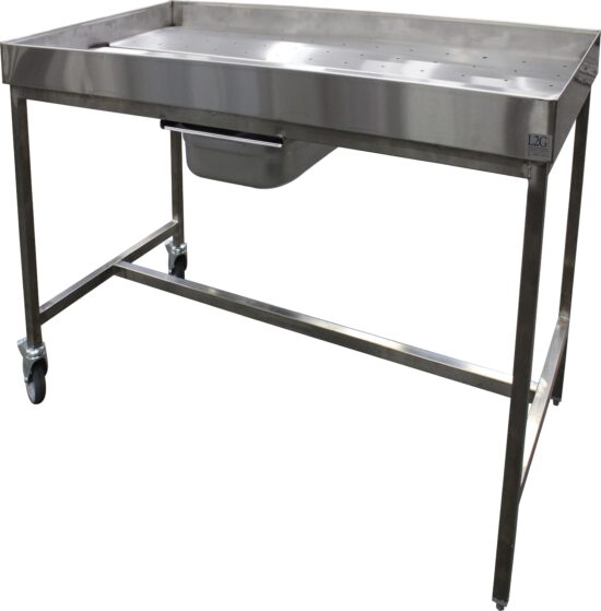 TABLE DE POUSSAGE INOX 304, AVEC GRILLE PERFOREE AMOVIBLE, 1 BAC DE RECUPERATION GN1/1-100