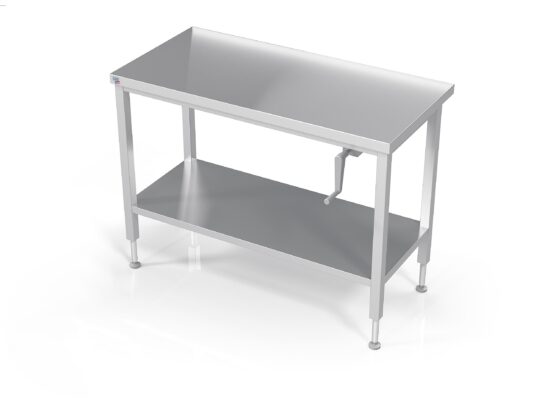 TABLE INOX SOUDEE INOX 304 CENTRALE CONFOR’TABLE + ETAGERE, REGLABLE EN HAUTEUR PAR MANIVELLE