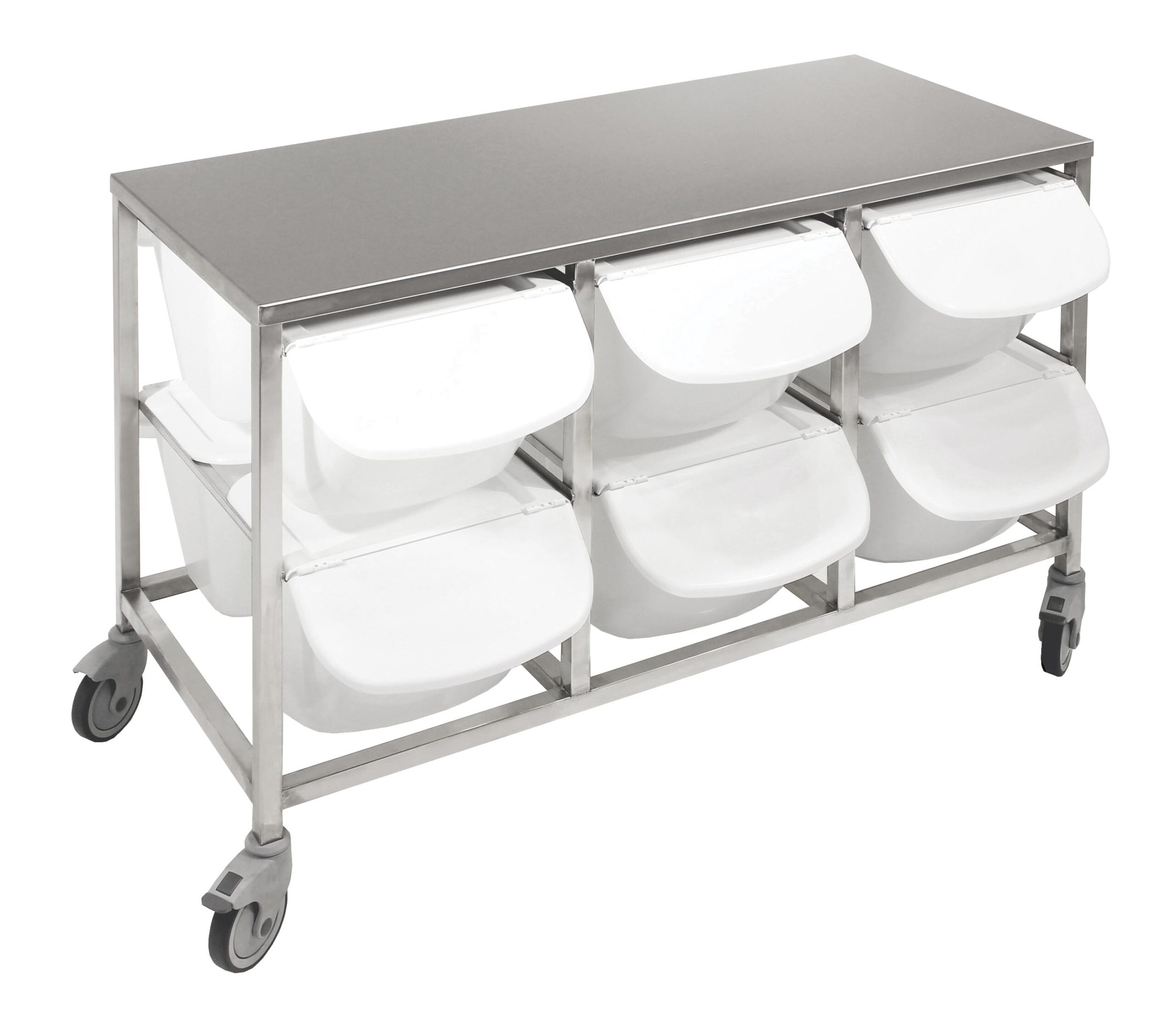 TABLE POUR BACS A INGREDIENTS INOX 304 SUR ROULETTES D.100MM,CHAPE ZINGUEE, PLATEAU INOX