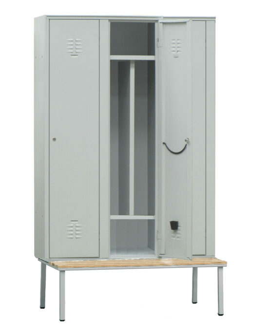 VESTIAIRE INDUSTRIE SALISSANTE ACIER SUR BANC DESSUS BOIS, 3 CASES, COULEUR GRIS RAL 7035