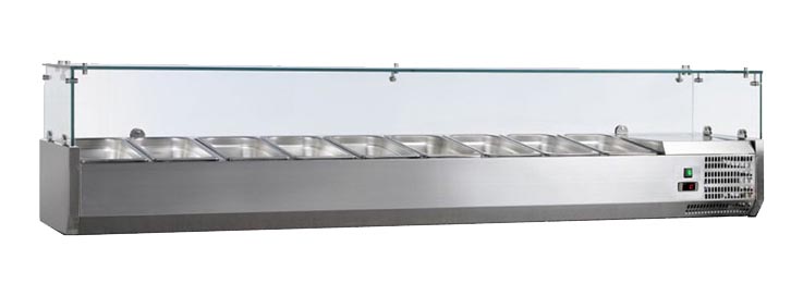 VITRINE A INGREDIENTS INOX, +2/+8°C, GAZ R600A PARE-HALEINE VERRE, 9GN1/3-150 NON COMPRIS